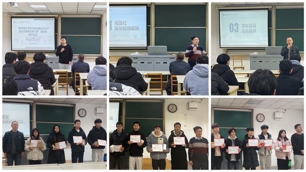 张顺祺老师向获奖学生表示热烈祝贺,并表示将通过比赛进一步推广先进成图技术,培养行业拔尖人才。随后,雷鸣老师高度评价学生专业水平,并介绍了先进成图与机器人创意俱乐部,该社团秉持“以赛促教、以赛促学、以赛促改”的理念,不断提升赛事的整体质量,助力学生成长。张士强副院长在总结时肯定了学生科技协会及先进成图与机器人创意俱乐部的辛勤付出与优秀成绩,并鼓励同学们利用学校资源,积极投身科技创新活动,为即将到来的省赛、国赛做好充分准备。他寄语同学们勇于担当,为校争光,在实践中积累宝贵经验,追求卓越,成就非凡。
