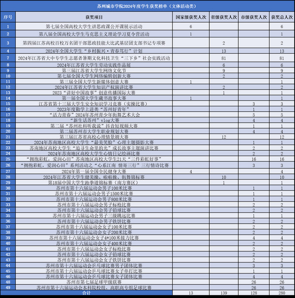 弦歌不辍,奋楫争先。2024年,我校坚持贯彻落实立德树人根本任务,强化内涵建设,始终把各类赛事活动作为培养有理想、敢担当、能吃苦、肯奋斗的新时代青年的重要抓手,人才培养质量显著提升。