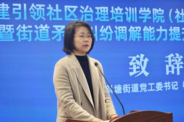 杨淑瑾在致辞中指出,近年来,斜塘街道高度重视党建引领基层治理,打造“头雁”工程、“书记有约”等队伍建设培训项目。面对新形势新要求新期待,斜塘街道将携手苏州城市学院深入探索和研究面向基层工作者的全口径、系统化、实战性培训赋能机制,推动高校教学成果在实践中转化为社区治理的新动能,并在实践中不断总结经验,全力塑造具有斜塘特色、能代表园区管理水平的基层品牌。