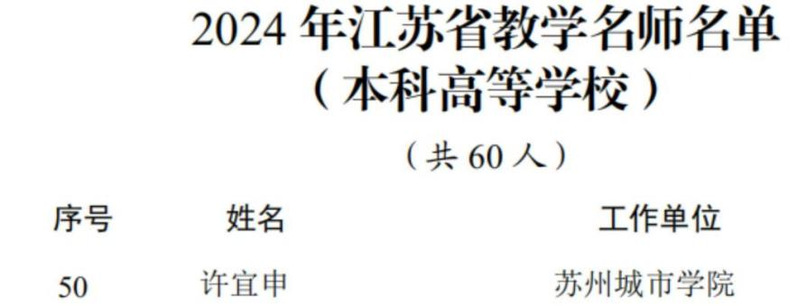 近日,江苏省教育厅发布《关于公布2024年江苏省教学名师人选的通知》,我校许宜申成功入选,这是我校在师资队伍建设方面取得的新突破。