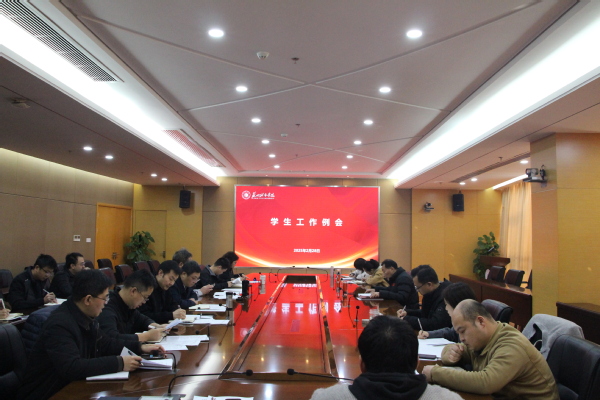 为全面部署新学期学生工作,确保各项工作有序推进,2月28日上午,我校在综合楼三楼大会议室召开学生工作例会。校党委常委、副校长吴昌政,团委(美育中心)、招生就业处、党委学生工作部(学生工作处)、党委保卫部(保卫处)等职能部门相关负责人,各二级学院党委书记、分管学生工作副书记、团学办主任以及党委学生工作部(学生工作处)相关老师参加会议。会议由吴昌政主持。