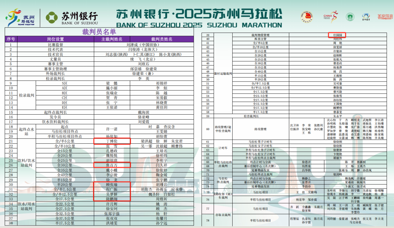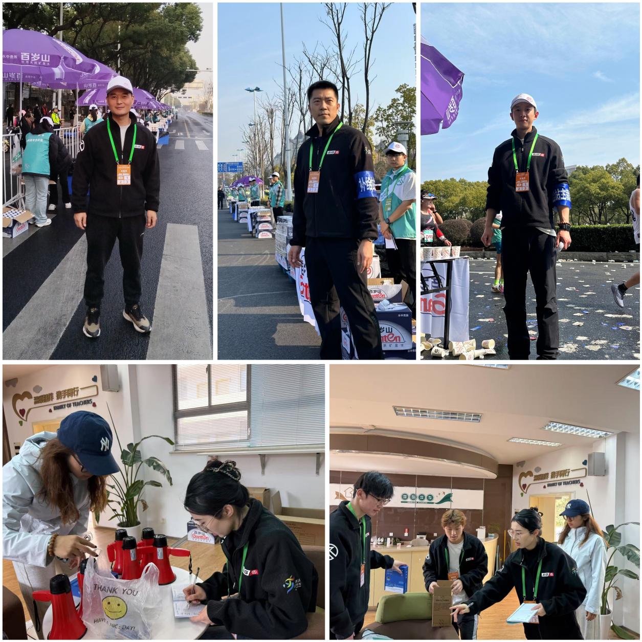 经过多轮培训、踩点及预演,比赛当天,程广振、隋鹏翔、吴梦妍、丁博伦、顾张瑜、焦百万和任园园7名教师凭借丰富的体育教学经验和专业的裁判知识,分别在全/半马5公里、全/半马7.5公里、全/半马12.5公里、全马17.5公里、半马20公里、全马30公里等关键位置,以严谨负责的态度完成了赛道补给站和器材运输岗位工作,为本场赛事的运动员们保驾护航。