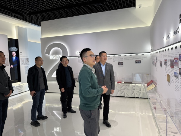 座谈会前,毛小勇一行参观苏州建研院展厅,通过实地观摩和案例讲解,全面了解集团在各个领域的工程成果和应用案例。