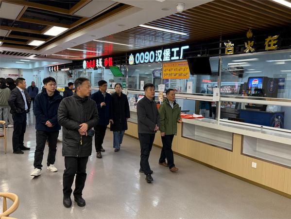 吴海鹏书记一行实地参观了我校食堂各个功能区,重点考察食堂业态规划、管理规范、智慧化建设等情况。冷飞对吴海鹏书记一行表示欢迎,他详细介绍了我校在食材采购、操作加工和卫生管理等方面的具体流程,并分享了我校在提升餐饮服务品质方面的创新举措。