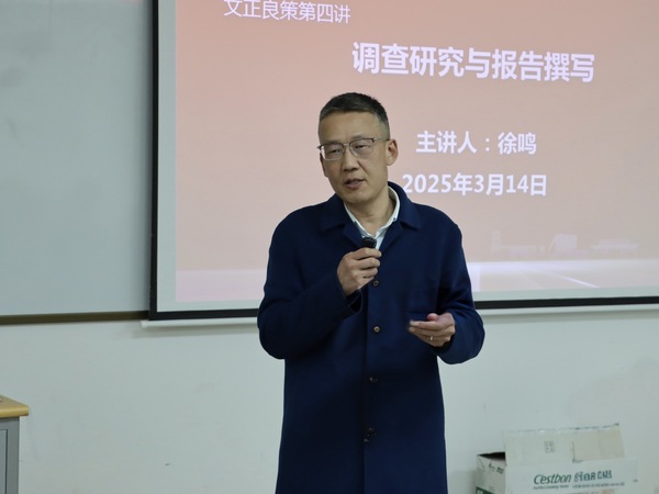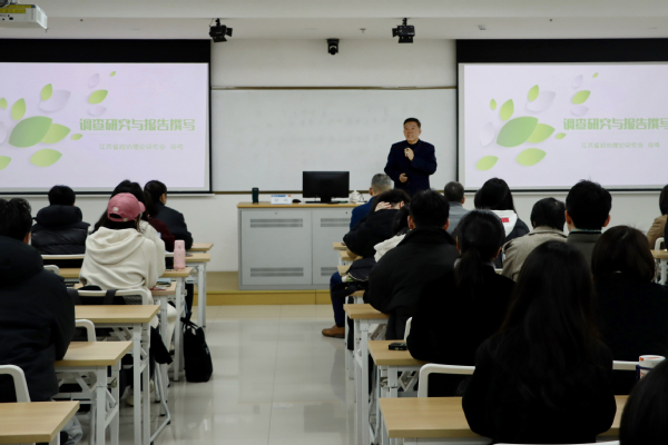 徐鸣分别从调查研究的目的、科学调查的组织、分析研究的方法及调查研究报告撰写等四个方面详细介绍了如何开展调查研究和撰写高质量的研究报告。他指出,调查研究的目的是合理解决问题,必须坚持以问题为导向,要抓住热点问题及时提出政策建议,将调查的“求实”与“求是”相结合,并把科学研究建立在不断提高自身素养的基础之上。他强调,报告的撰写不仅要讲究一定的技巧,例如标题要醒目、主题要集中、语言要凝练、逻辑要清楚等,而且报告内容要有准确性、鲜明性和生动性。在讲座最后,他还热心分享了自己进行调查研究和撰写决策咨询报告的宝贵经验,并为在座教师推荐了相关指导书目。