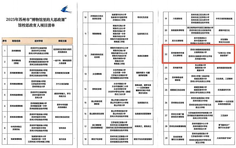 会上,我校联合苏州新梅华饮食文化博物馆、太湖旅游中等专业学校及太湖湾实验小学共同打造的“江南文化+苏味美食营养”项目,入选首批33个馆校思政育人示范项目。这标志着学校在文化传承与思政教育融合创新中迈出重要一步,为深化“大思政课”建设提供了鲜活样本。