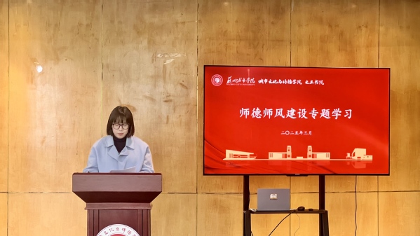 院长助理、学院纪检委员茆萌带领全院教职工学习教育部等七部门印发《关于加强和改进新时代师德师风建设的意见》与《新时代高校教师职业行为十项准则》。她强调,学院教师要以习近平总书记重要讲话为指引,将师德师风建设工作融于日常教学科研工作,坚守职业道德底线,不断加强师德师风建设。