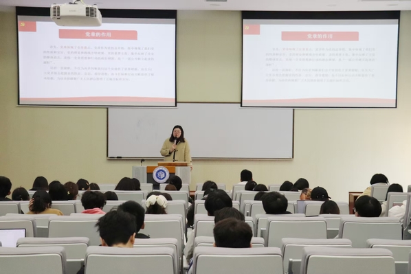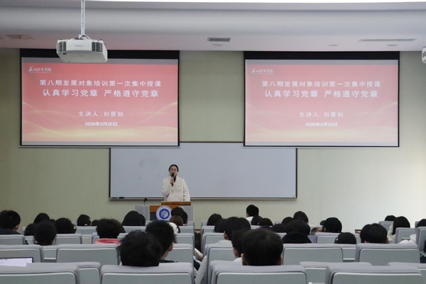 3月20日下午,我校第八期发展对象培训第一次集中授课在3-201教室举行。我校马克思主义学院刘晋如老师主讲,主题为《认真学习党章 严格遵守党章》。本次授课由党校老师饶琼主持。