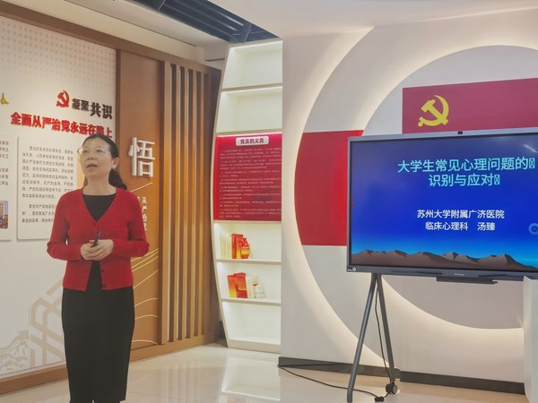 为进一步提升我校辅导员队伍的心理育人工作水平,加强大学生心理健康教育工作队伍建设,3月27日下午,我校在党建与廉政教育基地开展第六期辅导员心理工作技能提升工作坊。本次培训特邀苏州市广济医院临床心理科主任汤臻开展“春季大学生常见心理问题的识别和应对”专题培训,全体辅导员参加活动,活动由心理健康教育中心沈怡佳主持。
