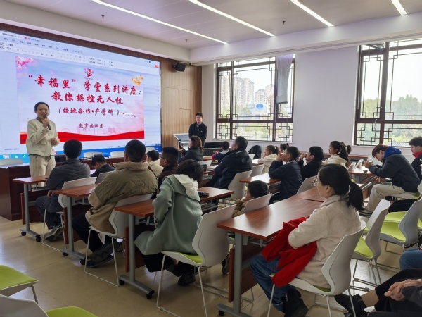 3月29日下午,我校发展委员会办公室与教育园社区在“幸福里”学堂联合举办了一场主题为“低空经济与无人机技术”的科普讲座,吸引了约30名社区居民参与。活动由我校尼洪涛副教授主讲,通过生动案例和实操演示,为学员揭开无人机技术的奥秘。