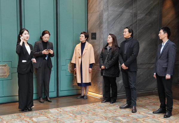 在苏州柏悦酒店管理团队的陪同下,学院一行先后参观了酒店的大厅、客房及特色功能区。作为凯悦集团旗下的奢华品牌,苏州柏悦酒店以“现代苏式园林”为设计核心,将传统江南美学与当代艺术相融合,客房内智能控制系统、定制化家居设计等细节展现了高端酒店的服务理念与技术创新。参观过程中,学院一行对酒店的空间布局与用户体验设计表示高度认可。