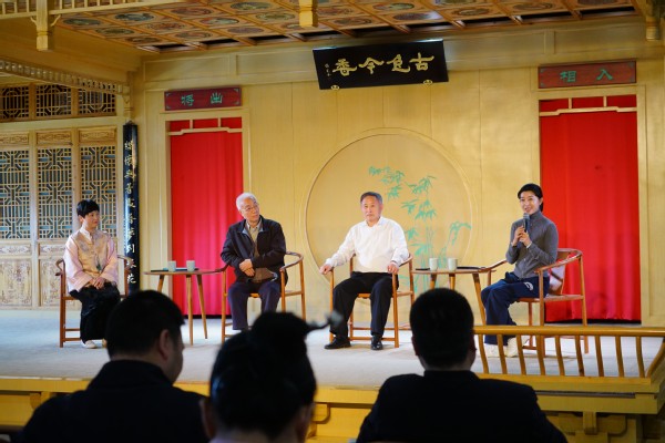 在对话研讨环节,田芝健院长表示,品味昆曲,欣赏昆剧,通过昆曲文化传承创新发展和“昆山之路”的生动实践,通过“融城思政”,发挥蕴涵其中的思政引领力,价值导向力,风尚塑造力,审美共情力,历史穿透力。一是昆曲艺术家,艺术化呈现历史场景,演绎人物故事情景,表达对美好生活愿景的追求。二是欣赏的过程是进行跨时空能量交换的过程,台上台下开展价值观对话、审美情趣共情,有力促进健康生活态度塑造。三是彰显对公平正义的追求,对真善美的崇尚,对假恶丑的鞭笞和批判。四是揭示社会发展真理,了解历史故事真相,体现人间真情。五是实现思想性和艺术性的相辅相成、永恒性与流动性的高度结合,真理性与情感性的有机统一。昆山当代昆剧院坚持“出人出戏出品牌”,取得显著成效,这对我们深化提升“融城思政”品牌建设,具有极大启发。今后我们要加强产教融合、院校地企合作,协同创新,促进立德树人提质增效,共同致力于强国建设、民族复兴。