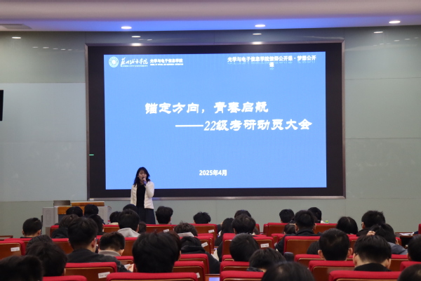 为进一步激发2022级学生考研热情,帮助学生科学规划备考路径,明确考研目标,4月2日晚,光学与电子信息学院在教学楼3-101成功举办“锚定方向,青春启航”2022级考研动员大会。动员会特邀研途考研程大伟老师作为主讲嘉宾,学院副院长钱敏,团学工作办公室副主任李星宇,2022级辅导员罗雨虹及部分班主任和学生代表共同参会,会议由罗雨虹主持。