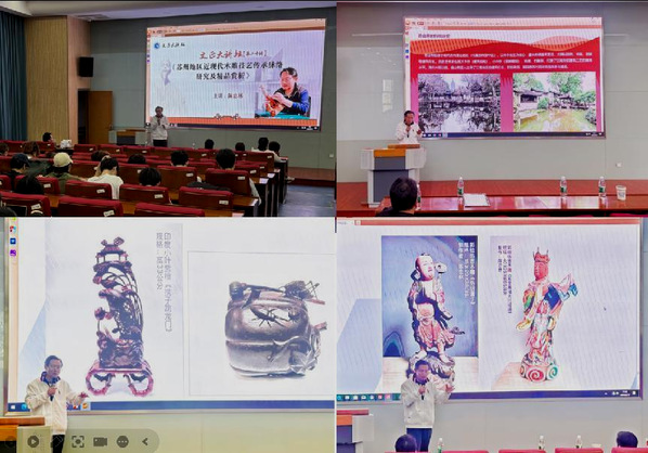4月17日上午,由艺术与创意设计学院承办的苏州城市学院文正大讲坛第二十讲在3号楼101开讲。江苏省工艺美术大师、江苏省非物质文化遗产“木雕(苏州红木雕刻)”代表性传承人、正高级工艺美术师陈忠林先生应邀来校,为师生作题为《苏州近现代木雕历史发展脉络和个人精品赏析》的专题讲座。