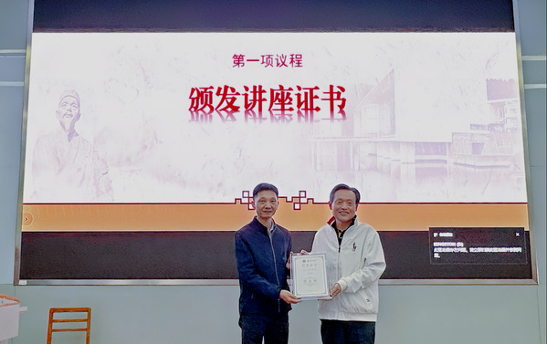 讲座正式开始前,艺术与创意设计党委书记刘文代表学院对陈忠林的到来表示热烈欢迎,并为陈忠林颁发“文正大讲坛”讲座证书。