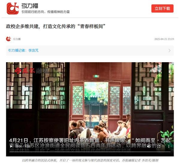 今天(4月21日),江苏按察使署旧址内茶香氤氲、书声琅琅。第30个“世界读书日”到来之际,“如阅而至·艺起青春”姑苏区沧浪街道全民阅读暨五四青年节活动,以跨界融合的沉浸式体验,开启了一场传统文脉与现代创意的深度对话。活动通过政校企联动模式,集结苏州大学、苏州城市学院等6家单位资源,创新推出非遗课程体系、青年夜校等文化工程,打造文化传承“青春样板间”,为古城保护注入青春动能。