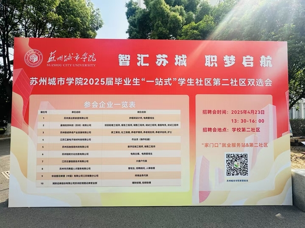 为贯彻落实党中央、国务院关于做好高校毕业生就业工作的决策部署和省委、省政府相关工作要求,切实促进我校2025届毕业生高质量充分就业,我校于4月23日举办“智汇苏城,职梦启航”2025届毕业生“一站式”学生社区第二社区双选会。本次双选会由城市文化与传播学院协办。