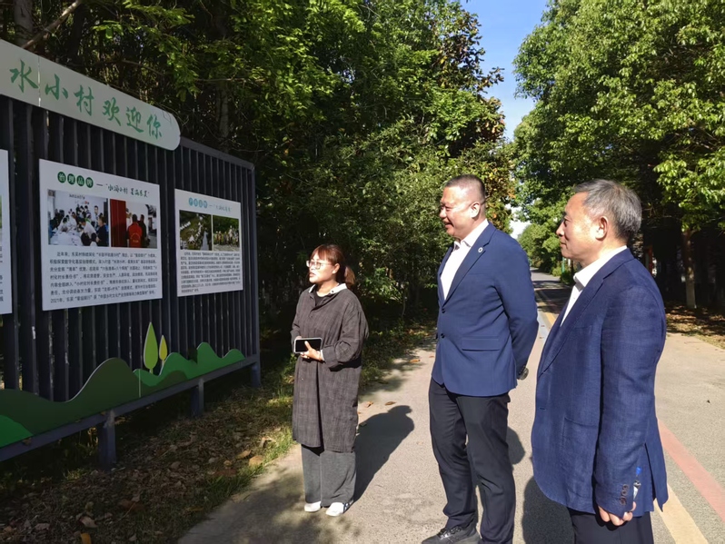 座谈结束后,叶桂平在田芝健的陪同下调研了学校共建单位——东吴村,东吴村党委副书记、纪委书记徐晓燕向叶桂平介绍了东吴村党建引领基层治理和乡村振兴的实践成效。