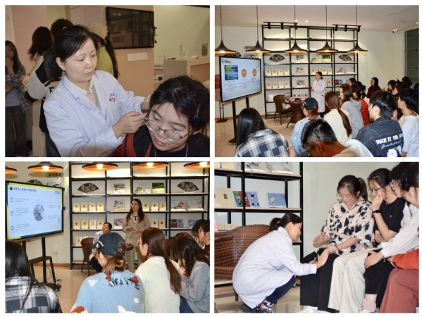 夜幕降临,健康知识的传递仍在继续。当晚,两场干货满满的健康讲座在古吴轩书店精彩开讲。吴中区疾控中心的于佳医生带来《守护健康,从“接种开始”》专题讲座,她以通俗易懂的语言,深入剖析预防接种的重要意义与相关知识,让青年学生深刻认识到预防接种对健康防护的关键作用。紧接着,吴中区越溪卫生院的夏晓燕医生带来《春风清明扶正气,中医智慧护安康》讲座,围绕清明时节的气候特点与养生原则,传播中医文化。讲座结束后,夏晓燕医生还现场开展拔罐和耳穴埋籽体验活动,同学们纷纷上前尝试,亲身感受“上工治未病”的中医智慧。不少同学表示,会将所学的健康知识运用到日常生活中,以更健康的生活方式拥抱青春。