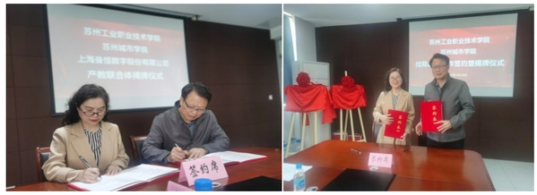 4月28日上午,由苏州城市学院艺术与创意设计学院、苏州工业职业技术学院建筑工程与艺术设计学院和上海曼恒数字技术股份有限公司、江苏维伍喔飞信息科技有限公司举办校际战略合作协议暨产教联合体揭牌仪式。仪式在苏州工业职业技术学院文建楼举行,由建筑工程与艺术设计学院书记李明主持。