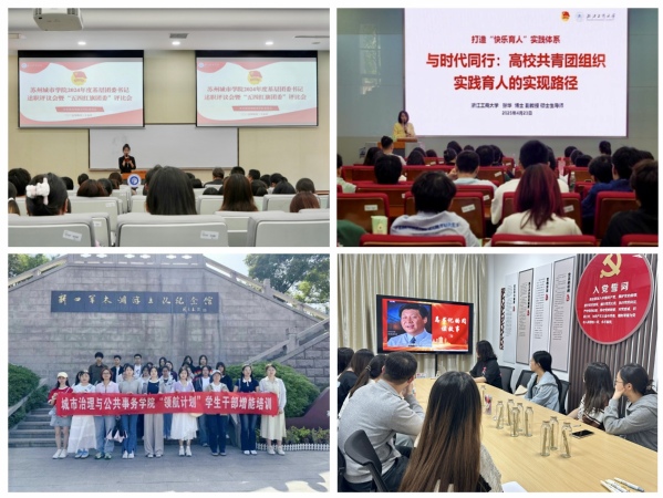 思想铸魂,在学习中汲取青春力量。为充分发挥先进典型示范引领作用,校团委组织开展2024年度苏州城市学院“五四红旗团委(团支部)”“优秀共青团员”“优秀共青团干部”评选工作,同时举办“知行青年”研习社讲座,邀请浙江工商大学团委书记张华作《与时代同行:高校共青团组织实践育人的实现路径》专题报告,提升共青团组织在新时代背景下的实践育人能力。城市治理与公共事务学院团委组织学院“青马工程”学员走进新四军太湖游击支队纪念馆共同开展青马公开课,通过沉浸式观影体验革命历程,在历史场景中深化爱国主义教育。城市文化与传播学院“一站式”学生社区知行社区(第二社区)功能型团支部开展“书香无界,阅读悦美”主题活动,通过共读《红岩》经典章节、观看《微视频:习近平的读书故事》专题片,创新“读书漂流瓶”互动形式,引导青年在阅读中厚植家国情怀。