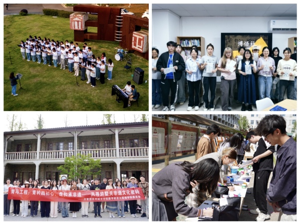 文化焕新,让美育绽放青春光彩。正值“五四青年节”到来之际,团委(美育中心)于文正雕塑前开展“春之声”音乐会,奏响青春礼赞。光学与电子信息学院团委联合苏州碑刻博物馆开展“古钱币传拓,探寻千年碑刻文化”非遗活动,探索苏州传统文化与高校育人实践深度融合新路径。数字经济与管理学院团委组织“青马工程”学员前往西陵堂遗址公园开展“青衿践初心,盘扣承非遗——共寻浒墅关非遗文化密码”主题团日活动,在实践中感悟工匠精神。艺术与创意设计学院组织开展“‘艺’起绘心,心随彩笔飞扬”活动,以色彩作媒介,用画笔作桥梁,展现青年对生活的观察与思考。