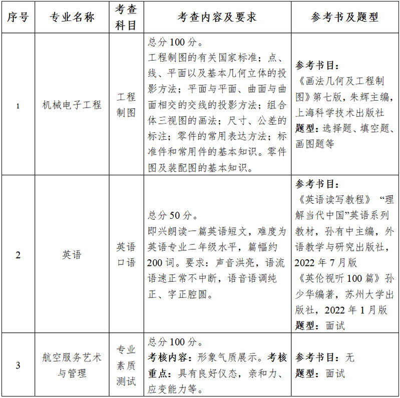 (2)航空服务艺术与管理专业考查科目《专业素质测试》
