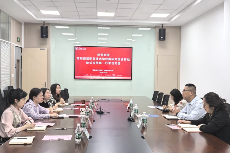 5月7日上午,苏州经贸职业技术学院国际交流合作处处长皮贺鹏、副处长顾秀梅及国际合作中心主任邵林到访我校,在国际交流学院206会议室举行座谈交流会。会议由我校国际交流合作处(港澳台办公室)处长王宁主持。