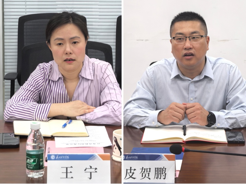 座谈会上,双方围绕师生出国(境)交流、来华留学生、国际交流品牌活动等内容展开深入交流。皮贺鹏介绍了苏州经贸职业技术学院在留学生管理、国际化职业技能培训等方面的经验。王宁分享了我校在中外合作办学、短期留学生项目、师生交流安全管理等方面的做法。