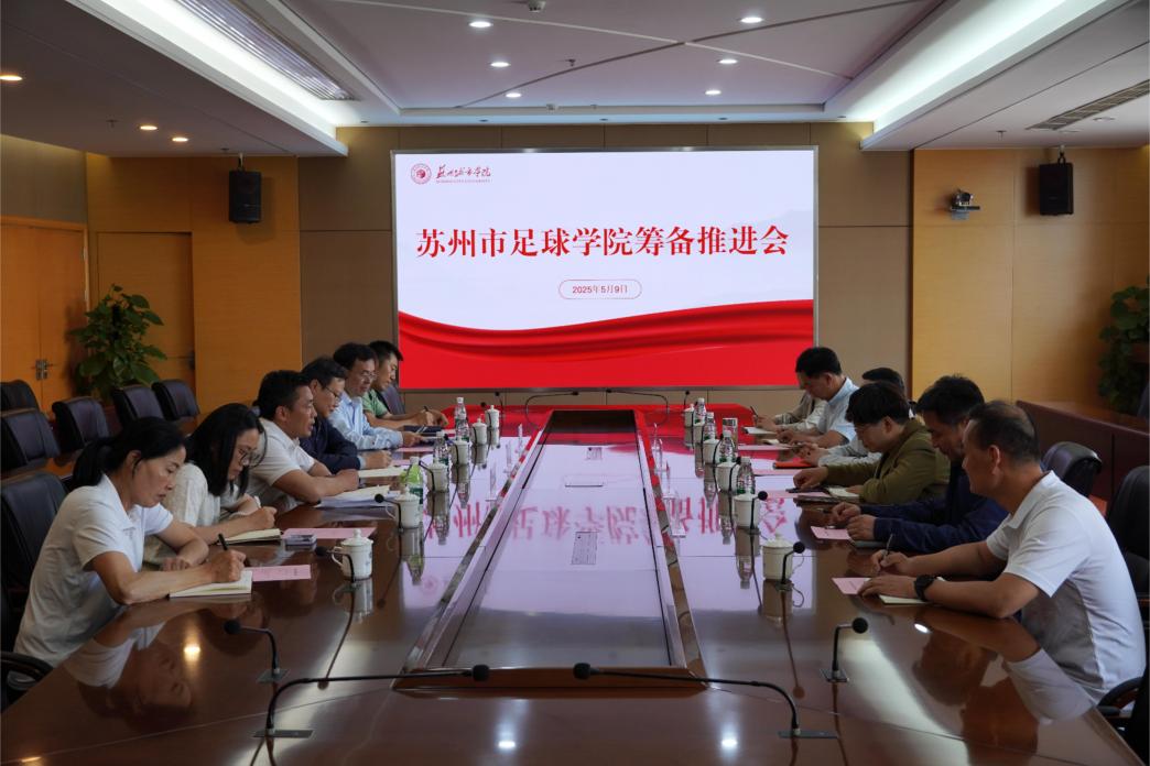为加快推进苏州市足球学院筹建工作,深化体教融合,助力苏州打造全国足球发展重点城市,5月9日下午,苏州市足球学院筹备推进会在我校召开。苏州市体育局局长阙明清,副局长程军红,竞技体育处处长马胜,苏州市足球运动管理中心主任王建军,苏州城市学院校长赵志宏,副校长高雷,基础教学部党委书记、主任李勇及相关教职工出席会议。会议由李勇主持。
