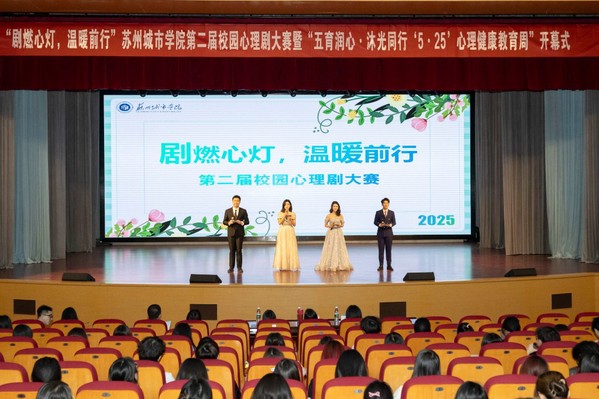 为推动《苏州城市学院“润心”行动实施方案》走深走实,融通“五育并举,以美润心”的心理健康服务理念,创新高校心理工作的路径与方法,5月13日晚,我校心理健康教育中心于综合楼多功能厅举办“‘剧燃心灯,温暖前行’苏州城市学院第二届校园心理剧大赛暨‘5·25’心理健康教育周开幕式”活动。活动特邀苏州大学大学生心理健康教育研究中心专职教师王平、苏州科技大学心理健康教育中心专职教师孟卓群与苏州市职业大学心理健康指导中心专业教师吉冬梅三位老师担任本次活动的专家评委。