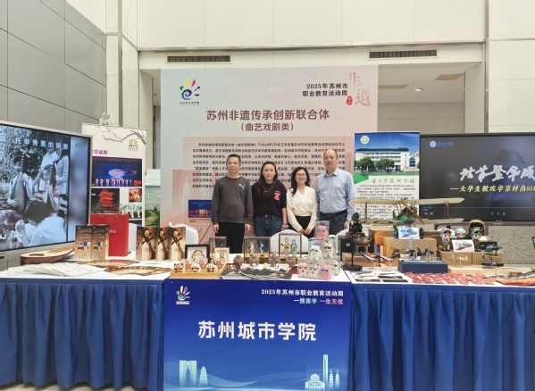 苏州非遗传承创新联合体(曲艺戏剧类)由苏州市教育局指导、苏州城市学院牵头,联合苏州市艺术学校、苏州评弹学校等多家单位共建。活动现场,通过展板、视频及互动体验等形式,重点呈现了以苏州评弹、昆曲为核心,融合苏剧、滑稽戏、泥塑等非遗类目的教育实践成果。近年来,学校面向学生开设《苏州评弹赏析》《昆曲赏析》《泥塑赏析》等通识课程,创建“苏州非遗‘数实融合’创新人才实验班”,推进非遗进课堂、进教材、进头脑、进专业、进师资,并获批“全国昆曲教育实践体验基地”。
