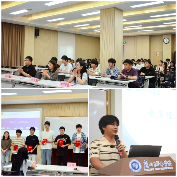 活动伊始,钱敏致开幕词。她系统回顾了2024年学生科创工作,充分肯定了学院师生在近20项高质量赛事以及大学生创新训练计划项目中取得的优异成绩。她强调,学院将持续依托“强基、品牌、卓越”三大计划,构建“产教融合、以赛促学、全员参与”的育人生态,致力于培养“知行合一”的高素质应用型人才,并对新一年学院在大学生创新创业方面提出殷切期望。随后,钱敏为荣获2024年度“科创达人”称号的15位学生代表颁发荣誉证书,勉励他们带头发挥作用,扎根科创实践,在技术攻坚中彰显青年担当。紧接着,学院学生科技协会科创服务部部长党云翔介绍个人科创经历与经验,并介绍学院《学科竞赛信息指南》。