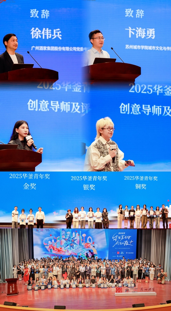 闭幕式于5月19日举行,广州酒家集团股份有限公司党委书记、董事长徐伟兵表示Young Stars China 2025华釜青年奖24小时创意赛展现了青年创意与传统文化的精彩碰撞,近200份作品让大家看到老字号品牌年轻化的无限可能,这些创意将成为广州酒家走向国际的重要助力,期待与青年才俊携手,共同推动粤菜文化创新发展。苏州城市学院城市文化与传播学院党委副书记卞海勇对主办方、广州酒家及所有参赛者表示感谢。他提出作为“新文科”建设实践者,学院始终推进产教融合,此次赛事正是校企协同育人的生动实践,期待以赛事为契机,共同推动文化创新与传承,为文化强国建设贡献青春力量。