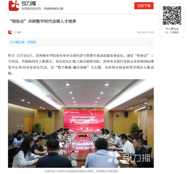 据该校数字经济与管理学院副院长李惠娟介绍,接下来,学院将通过强化与行业协会、龙头企业的战略合作,构建会展人才培养生态圈,为苏州打造“全国重要会展中心城市”提供坚实的人才支撑和智力支持。