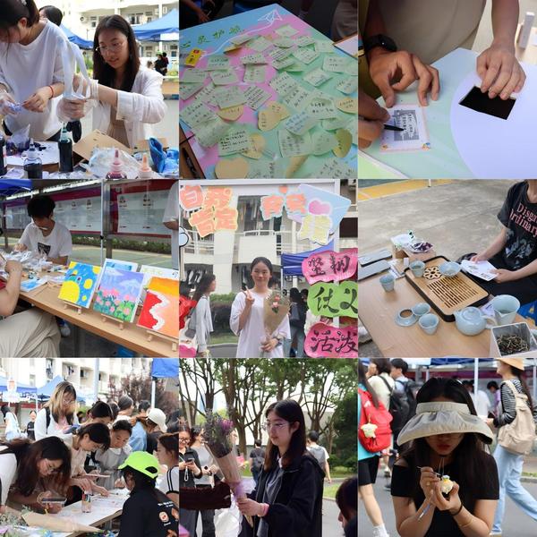 本次心理游园会采用“五育融合”的体验式学习模式,通过艺术疗愈、互动体验、文化浸润三大特色板块,打造沉浸式心理成长空间。在艺术疗愈板块,同学们通过黏土塑形、创意花艺、扎染手作和彩绘石膏娃娃等活动,在专注创作中实现情绪表达与自我探索;互动体验板块以心情刮刮乐、趣味抽奖等轻松有趣的方式引导学生发现日常生活中的温暖与美好;文化浸润板块则结合茶艺品鉴与读书分享,让参与者在传统文化的熏陶中沉淀心灵、获得精神滋养。