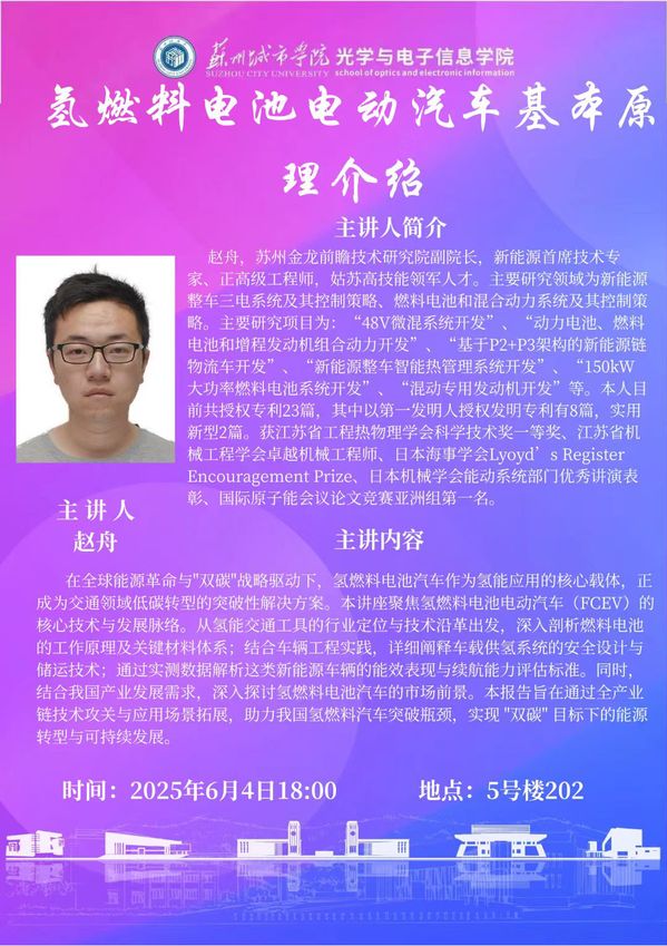 光学与电子信息学院讲座:氢燃料电池电动汽车基本原理介绍