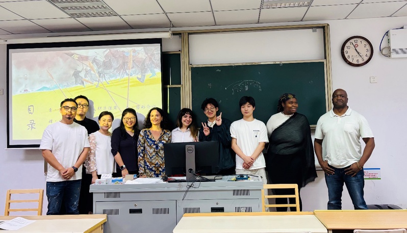 作为此次文化交流行程的重要一环,美国北卡罗来纳教育联盟代表团成员走进了苏州城市学院精心打造的“苏城艺苑”国际工作坊。在课堂上,代表团教授与巴黎高等视觉设计学院Afrouz教授交流了视觉传达学科的最新研究进展,并与参加国际工作坊的艺术与创意设计学院师生们交流讨论,开展一场深度沉浸、亲身参与的苏州传统文化与当代创意交融的体验之旅。