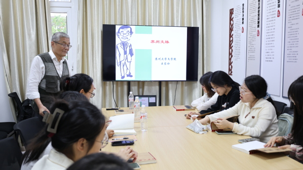 5月23日,由我校党委学生工作部(学生工作处)、关心下一代工作委员会、图书馆(档案馆)主办,城市文化与传播学院关心下一代工作委员会、“一站式”学生社区知行社区(第二社区)承办的“四季成长·苏城陪伴”品读《苏州文脉》·感悟千年吴韵读书分享交流会在“一站式”学生社区第二社区(知行社区)127室成功举办。此次活动特别邀请了原苏州大学文学院教授王家伦。