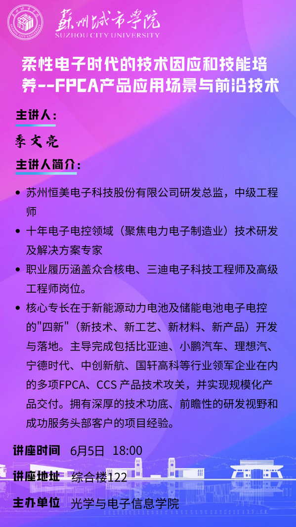 光学与电子信息学院《柔性电子时代的技术因应和技能培养——FPCA产品应用场景与前沿技术》讲座