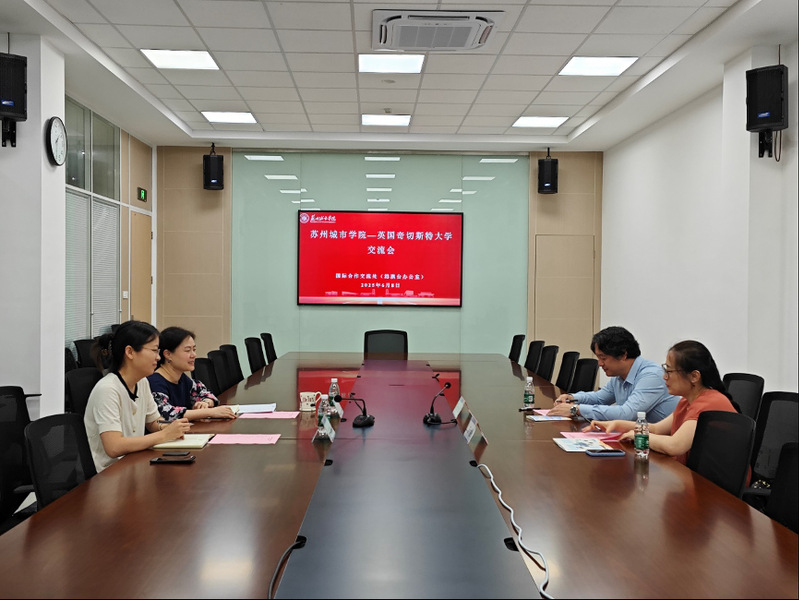 王宁首先对英方代表的到访表示热烈欢迎,并系统阐述了苏州城市学院在国际化办学道路上的实践成果,重点介绍了学校在中外合作办学领域的创新举措与发展蓝图。随后,奇切斯特大学代表Peter HE立足该校办学特色与专业优势,详细分享了国际化办学经验,并表达了深化合作的积极意愿。在后续磋商中,双方就拓展中外合作办学项目进行了务实高效的交流,针对合作框架设计、课程体系衔接、师生互访机制、教育资源整合等核心议题交换了建设性意见,致力于构建多层次、宽领域的战略合作伙伴关系。会谈在友好务实的氛围中圆满结束,双方达成重要共识,一致同意建立常态化沟通机制,加快推进中外合作办学项目的落地实施,将此次会谈成果切实转化为深化教育国际合作的具体实践。