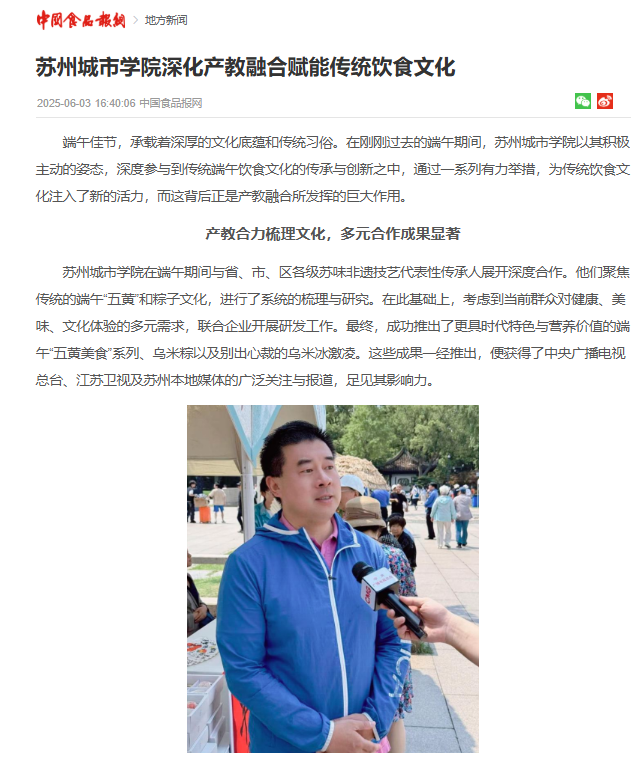 端午佳节,承载着深厚的文化底蕴和传统习俗。在刚刚过去的端午期间,苏州城市学院以其积极主动的姿态,深度参与到传统端午饮食文化的传承与创新之中,通过一系列有力举措,为传统饮食文化注入了新的活力,而这背后正是产教融合所发挥的巨大作用。