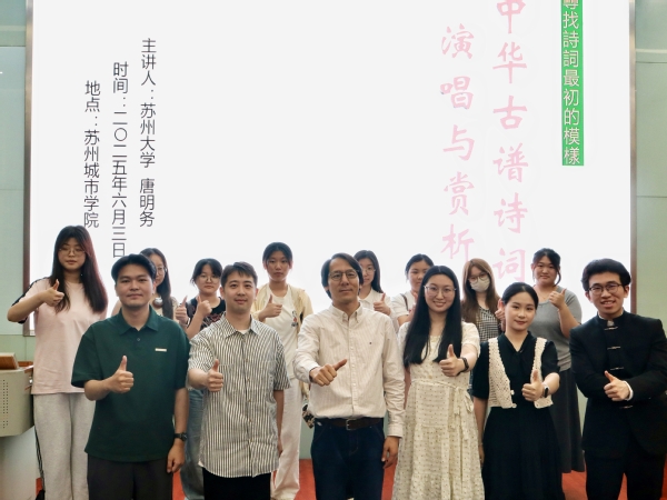 为深入学习贯彻习近平总书记关于弘扬中华优秀传统文化的重要指示精神,落实“党建带团建”工作机制,引导学生继承并弘扬中华优秀传统文化,提升审美境界与人文素养,6月3日,城市文化与传播学院于3-101举办“中华古谱诗词演唱与赏析”——城市文化与传播学院校级信仰公开课暨“青马公开课”第三次讲座。本次讲座特邀上海音乐学院在读博士、苏州大学音乐学院声乐副教授唐明务担任主讲。