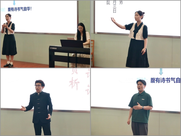 最后,唐明务的三位学生登台展示,他们以精彩的演唱为这场文化之旅画下了完美的句点。激昂的《满江红》传递着家国情怀,《七步诗》诉说着兄弟情长,《蝶恋花》的细腻情思宛转悠扬,他们用歌声让古典诗词的韵律美、文化美彻底“活”了起来。