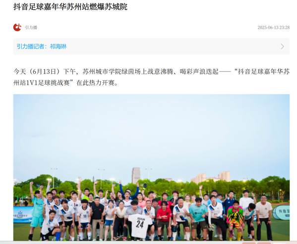 本次活动由苏州市政府携手抖音集团匠心打造,深度践行国家足球发展战略与《苏州市足球改革发展和全国足球发展重点城市建设工作方案(2024-2027)》,以“足球赛事+明星/达人演出+体育主题市集”的创新模式,全面激活全民足球运动热情。