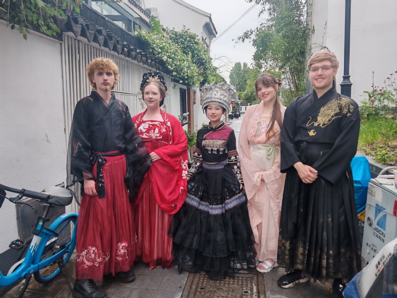 下午,美国师生们换上汉服,行走在青石板铺就的平江路上,亲身感受了中国传统服饰与江南古镇的独特魅力。