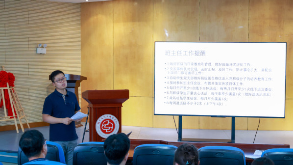沈耀就安全工作、心理工作、各类奖助学金评定工作等方面进行详细讲解。