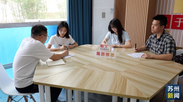 在苏州城市学院的校园内,这里的就业服务站为学生们提供就业政策解读、职业生涯指导、简历咨询、升学指导等服务。