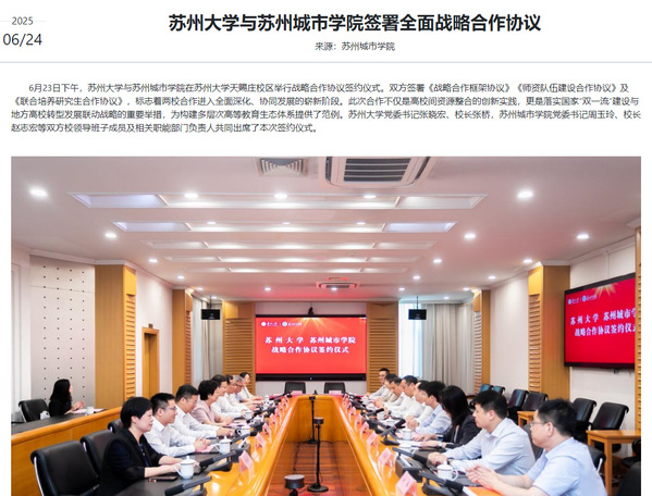 此次战略合作的达成,是驻苏高校优势互补、协同服务地方经济社会发展的生动实践,构建了“战略引领-资源整合-机制创新-效能转化”的深度合作范式,为全国地方高校与研究型大学协同发展提供了“苏州方案”,也为长三角教育一体化发展注入了新的动能,将为苏州加快建设展现“强富美高”新图景的社会主义现代化强市提供更为坚实的高等教育支撑。