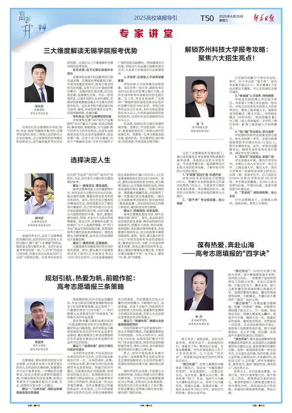 “择己所利”:合理设置志愿梯度,把握“冲稳保”策略。冲刺梦中情校属于能力之上,万一捡漏;稳妥锁定目标,保障大概率收入囊中;保底不可不填,确保万无一失。做最充足的准备,最周密的规划,欣然接受一切结果,无论何时都保持平常心,相信每个选择都有其价值,敢于突破舒适区,进入学习圈、成长圈,在挑战中丰富和拓展自己的阅历。